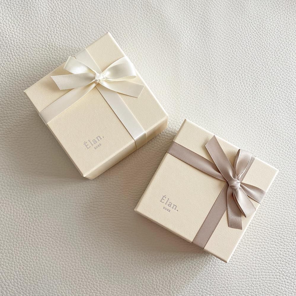 Elan.のロゴが入った上質な紙貼箱にリボンをお掛けいたします。