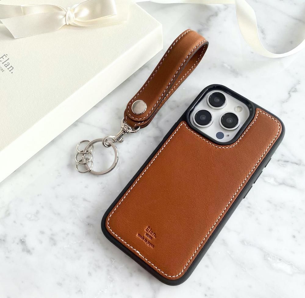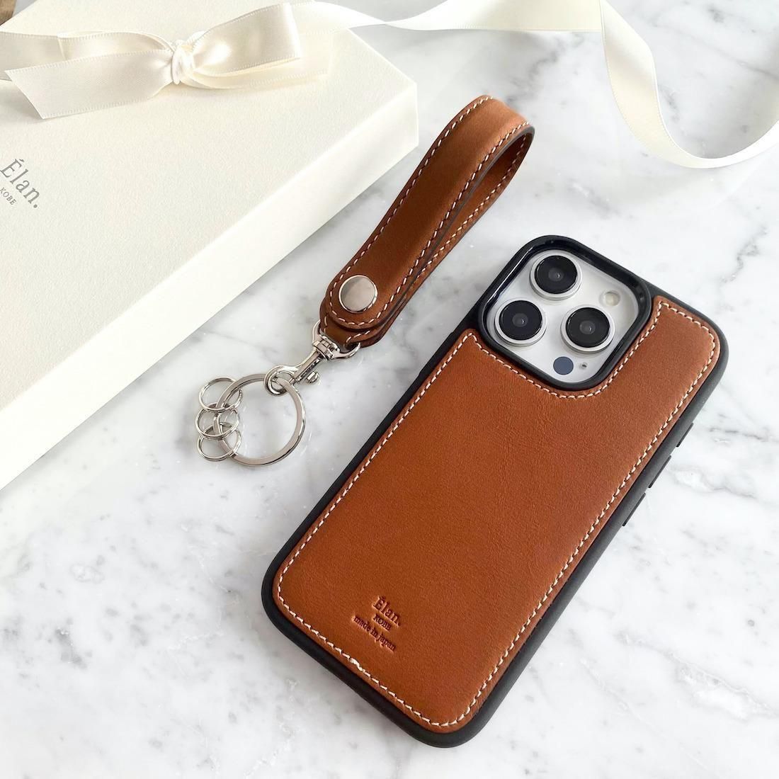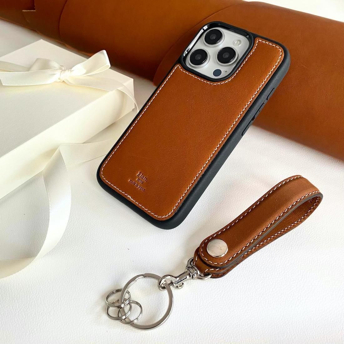 バレニアレザーを使用した iPhoneシンプルレザーケース(TPUタイプ)とレザーキーストラップのギフトセット。